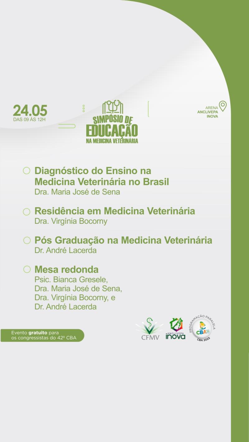 O Simpósio de Educação na Medicina Veterinária vai acontecer no dias 24 de Maio, das 09h às 12h.